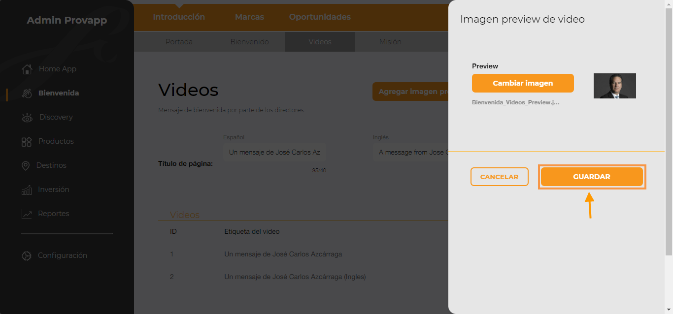 O bien, si da clic en Regresar, podrá seguir modificando los datos de Imagen preview de video.