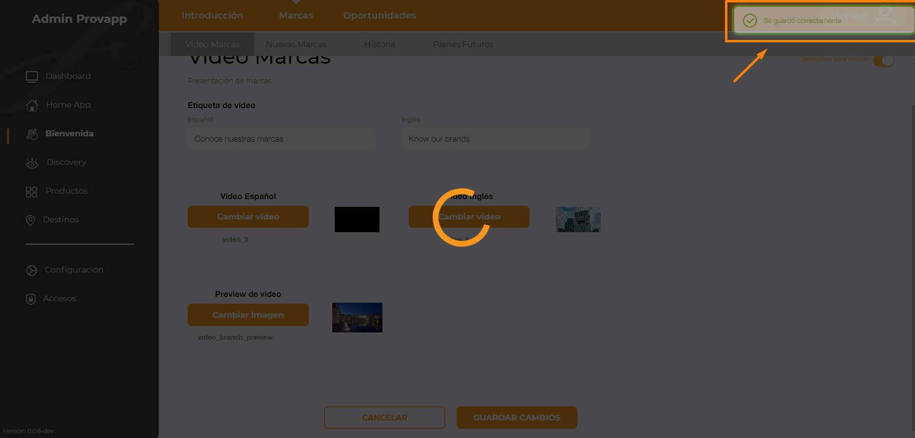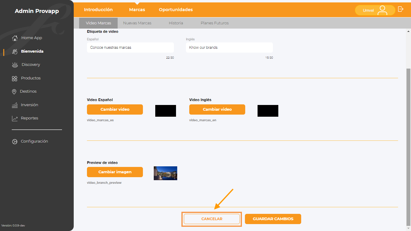 1.- Seleccionar la opción de Bienvenida y posteriormente dar clic en la sección Video Marcas.
