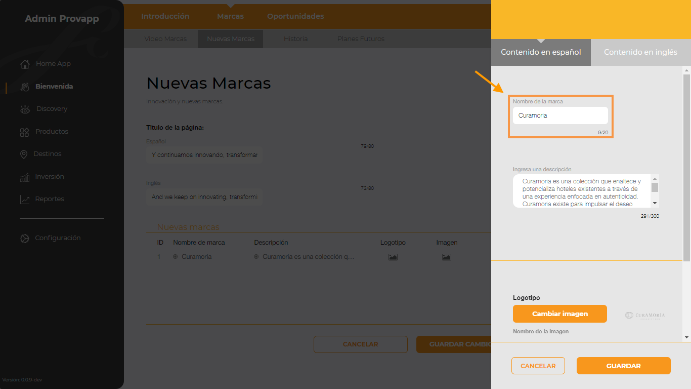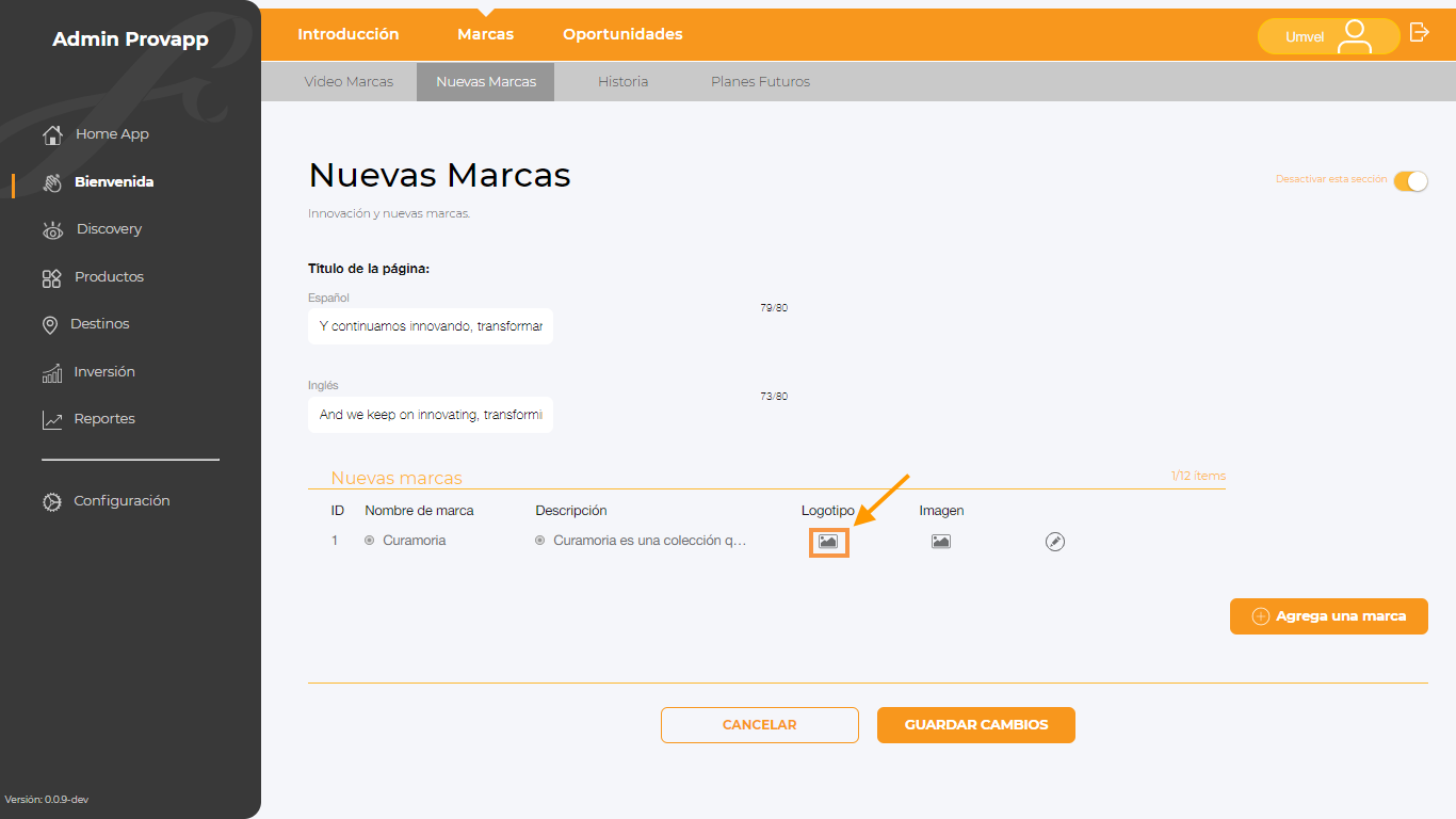 ¿Cómo modificar la portada de Nuevas Marcas?