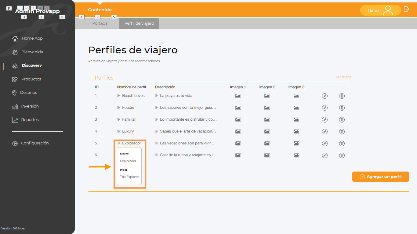 1.- Seleccionar la opción del Menú Discovery, y posteriormente dar clic en la sección Perfil de viajero