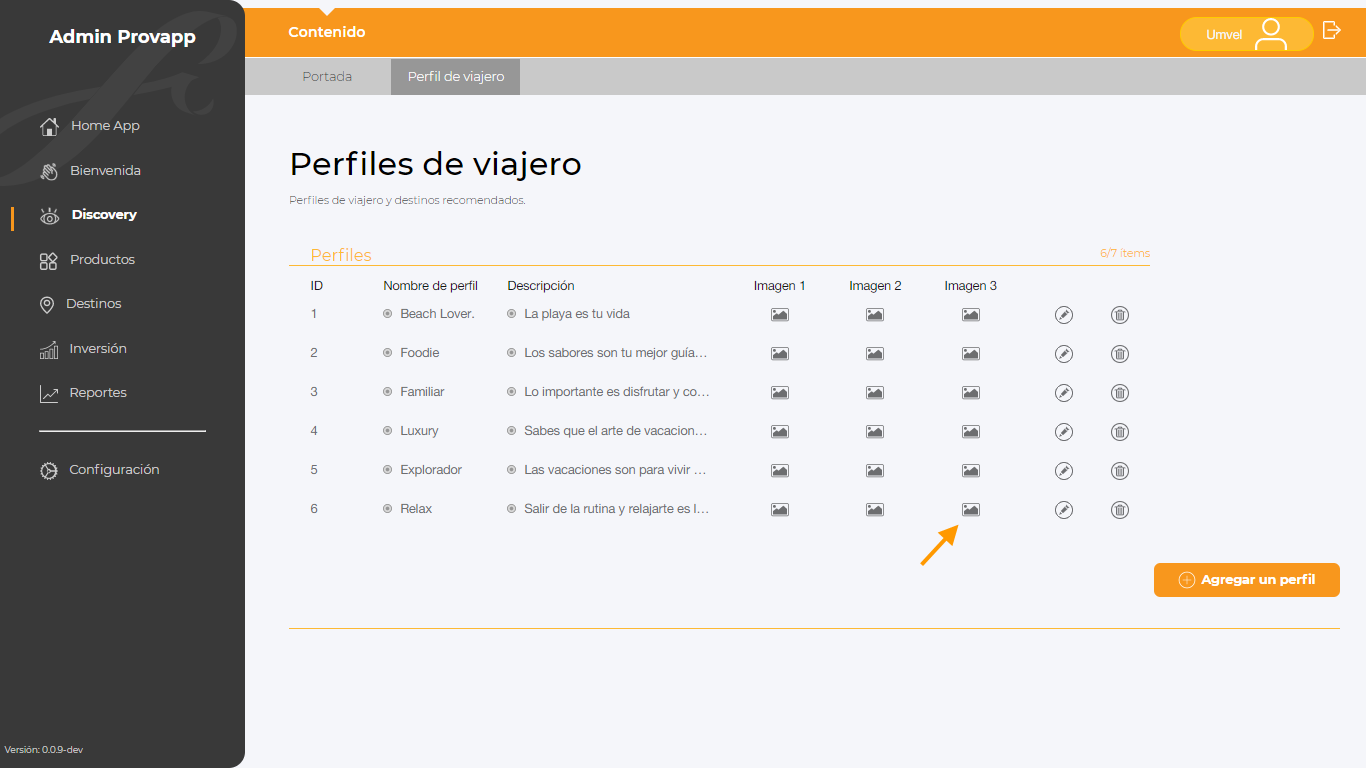 Finalmente para agregar la imagen en los campos: icono, perfil, y de los destinos.