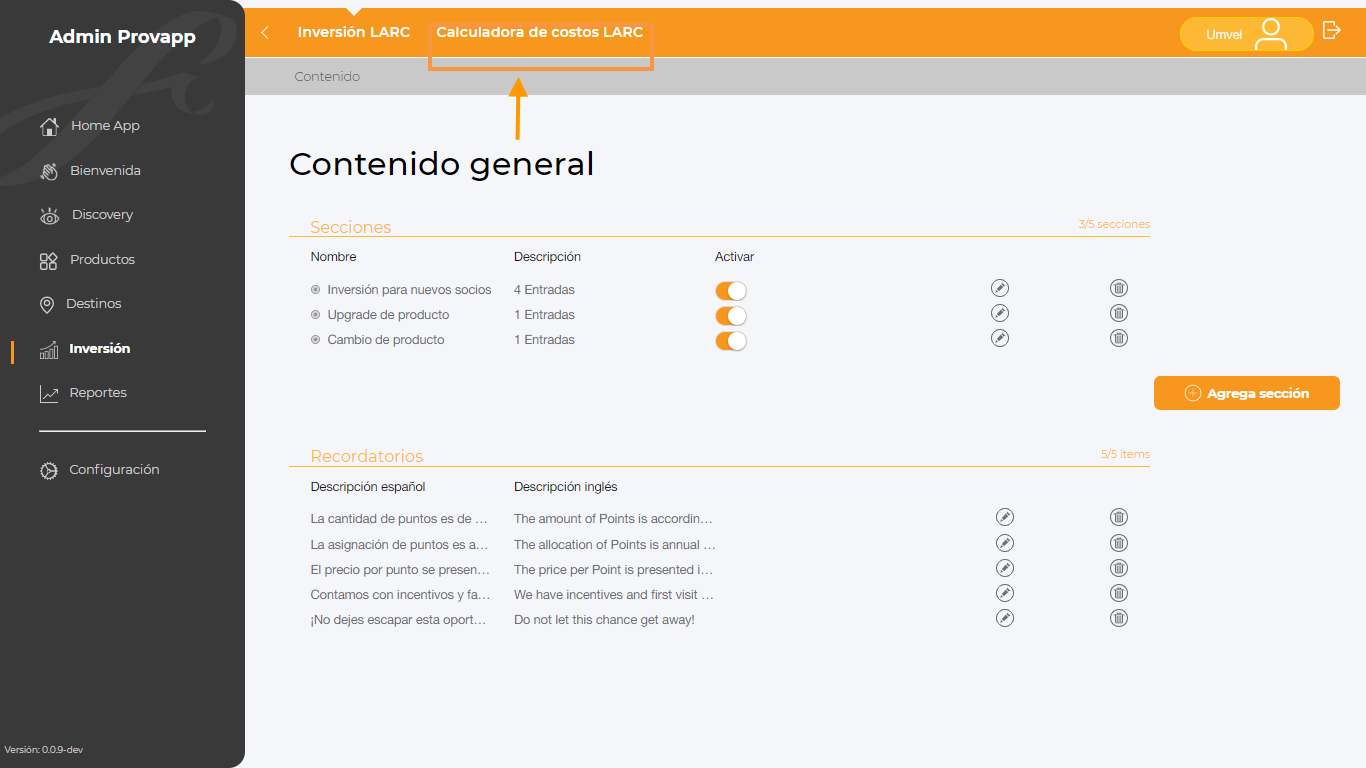18.- Para visualizar la sección en la App, se tendrá que dar clic en el switch Activar esta sección.