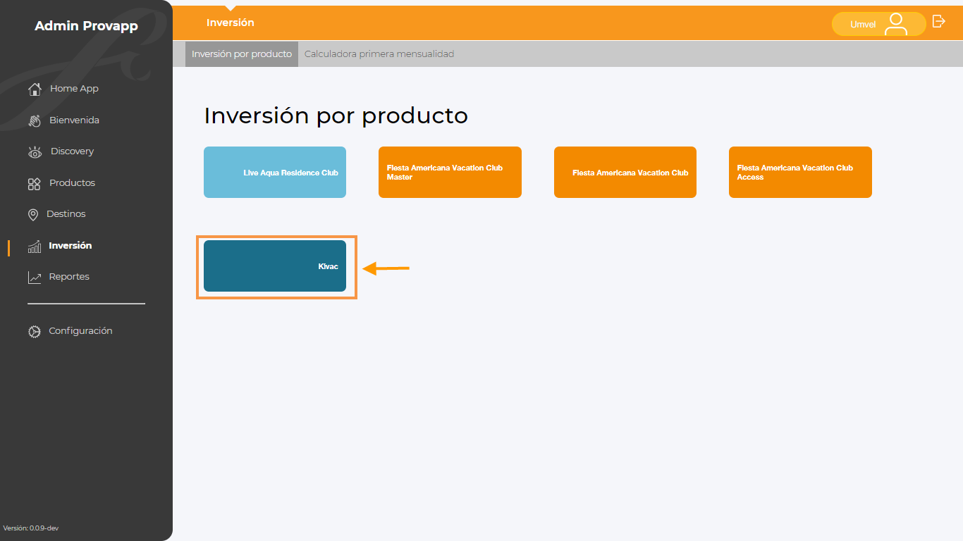 1.- Seleccionar la opción del Menú "Inversión", y posteriormente dar clic en la sección "Inversión por producto".