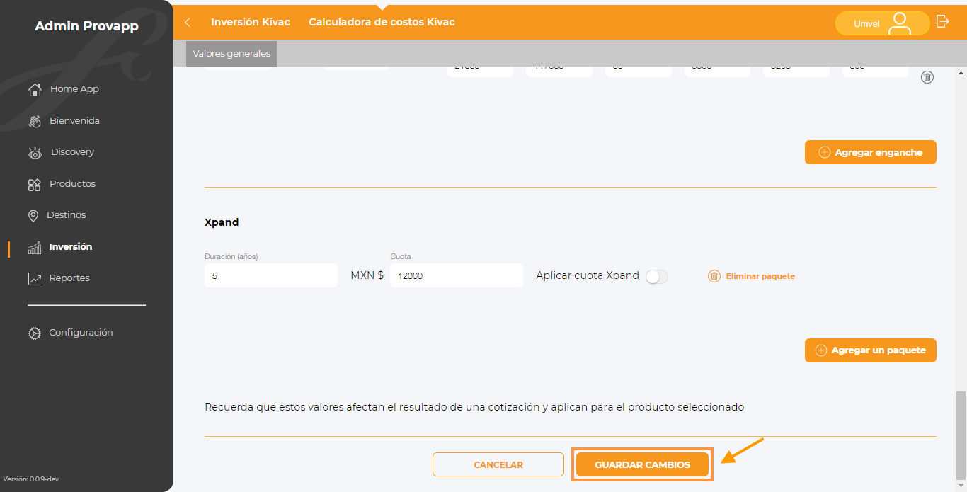 10.- Podrá agregar una paquete adicional, dando clic en el botón +Agregar un paquete.
